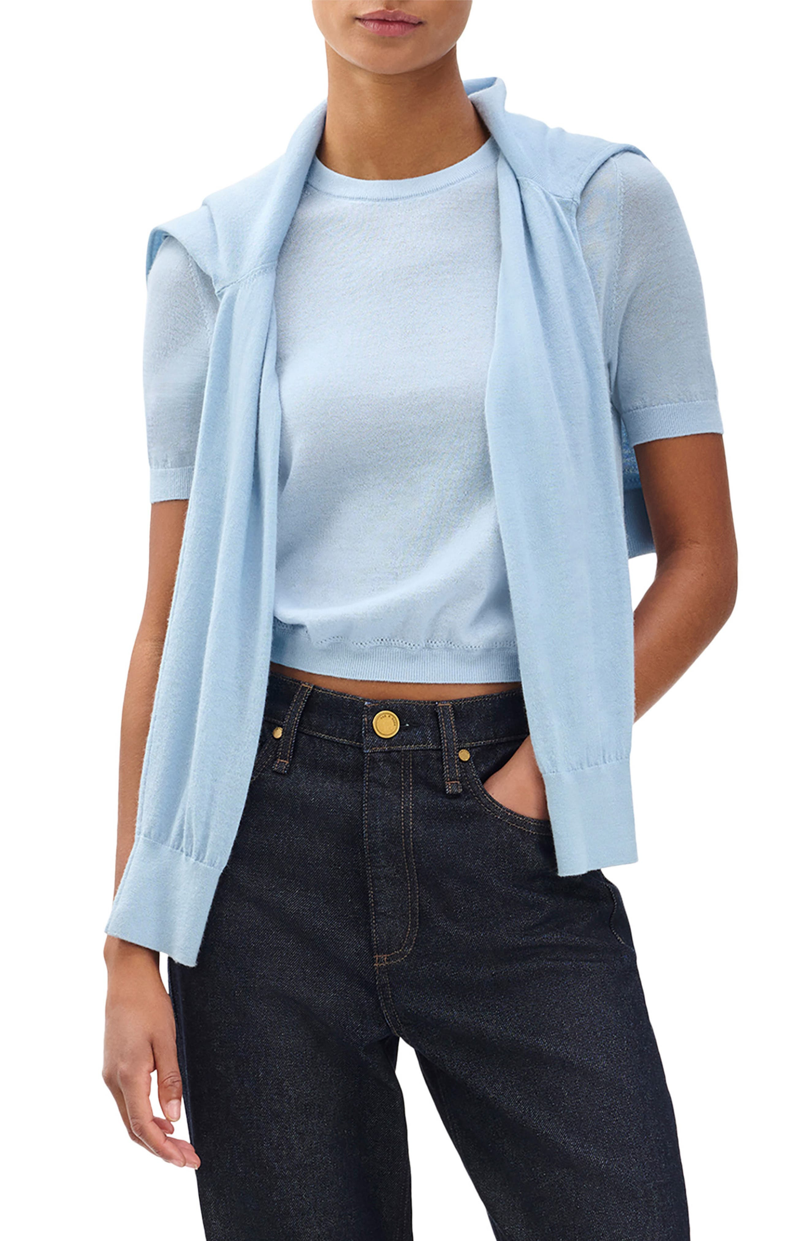 Lightweight cashmere makes this short-sleeve sweater a soft and chic upgrade to standard crewneck tops. 19 1/2" length (size Small) Crewneck Short sleeves 100% cashmere Dry clean or hand wash, dry flat Imported