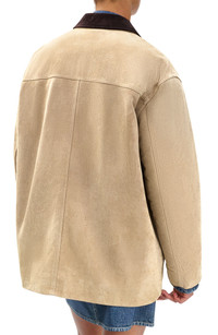 A contrasting corduroy collar provides a smart finish for an oversized suede jacket that delivers on modern utilitarian style. 29" length (size Small) Front snap closure Spread collar Front welt pockets; snap-flap patch pockets Lined Leather Professional leather clean Imported