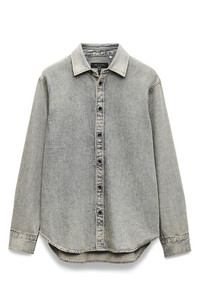 A new muse for your closet, this lightweight denim shirt combines artful fading with an easy drape striking that elusive balance between laid-back cool and buttoned-up polish. 30 1/2" center back length; 47" chest Front button closure Spread collar Long sleeves with button cuffs Curved hem 50% cotton, 40% lyocell Machine wash, tumble dry Imported