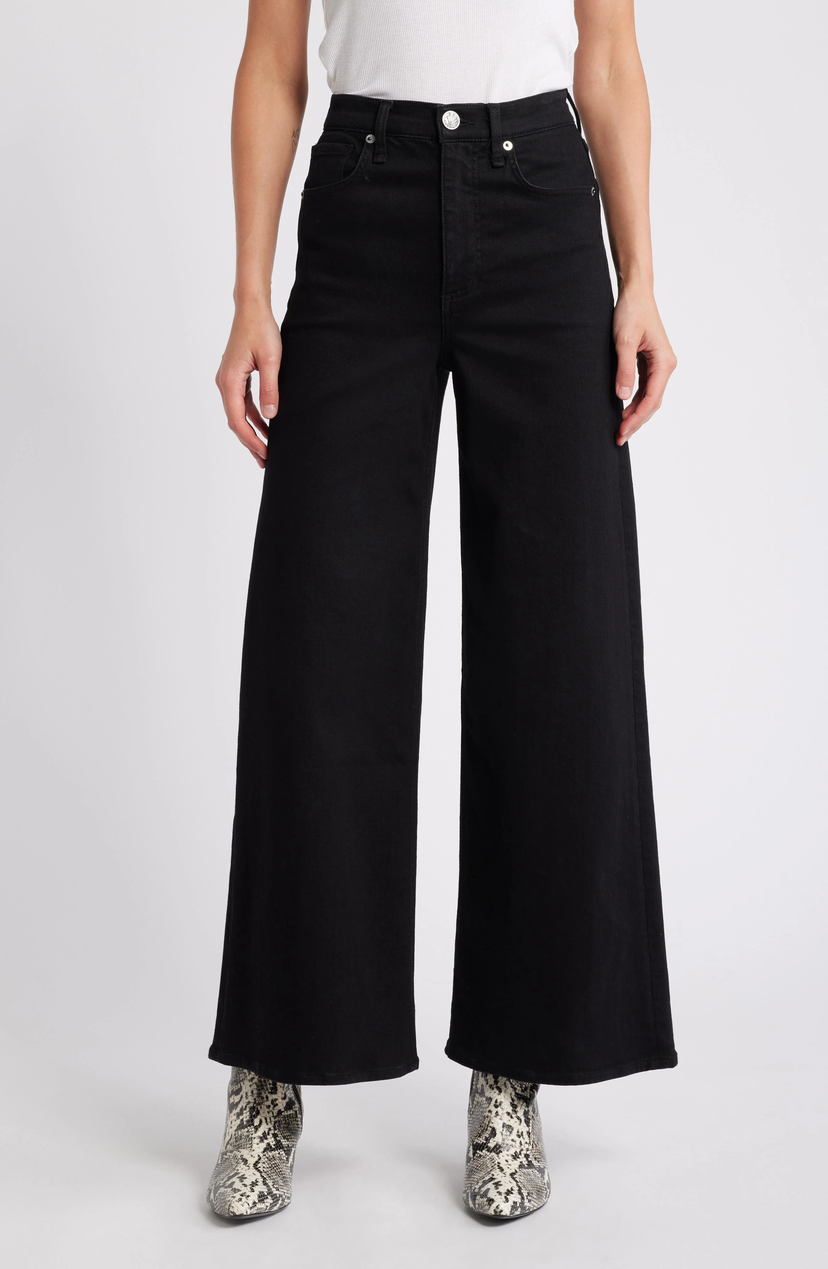 rag & bone Flexi Sofie High Waist Ankle Wide Leg Jeans in Black at Nordstrom