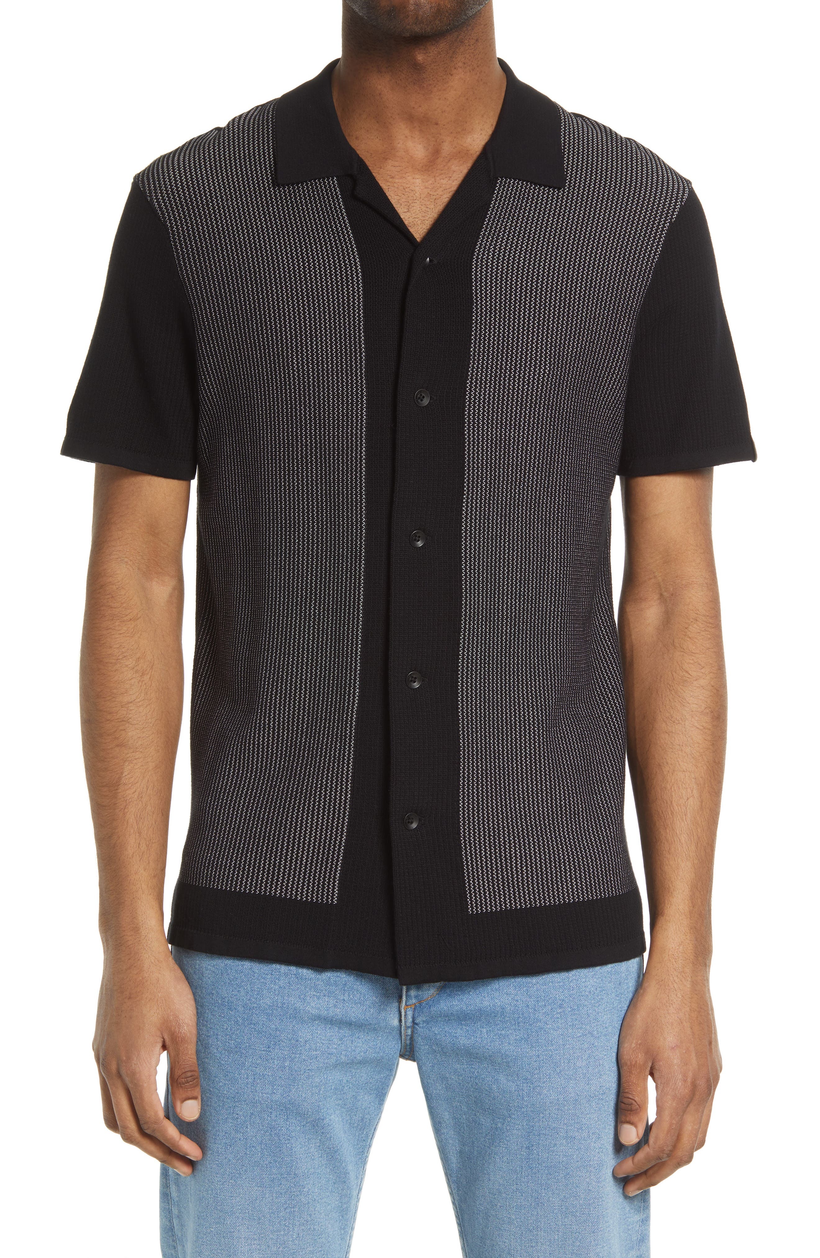 rag & bone Harvey Short Sleeve Knit Button-Up Camp Shirt in Blkwht at Nordstrom