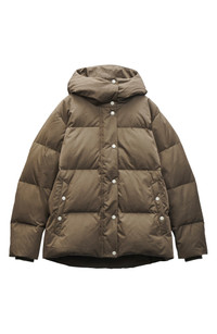 Bundle up against the cold with this channel-quilted down jacket made from durable cotton-blend fabric and topped with a chill-chasing hood and inset ribbed cuffs. 27 1/2" length Front zip closure with snap storm placket Fixed hood Inset ribbed cuffs Front snap-welt pockets Lined, with 80% duck down, 20% duck feather fill 66% cotton, 34% polyamide Dry clean Imported