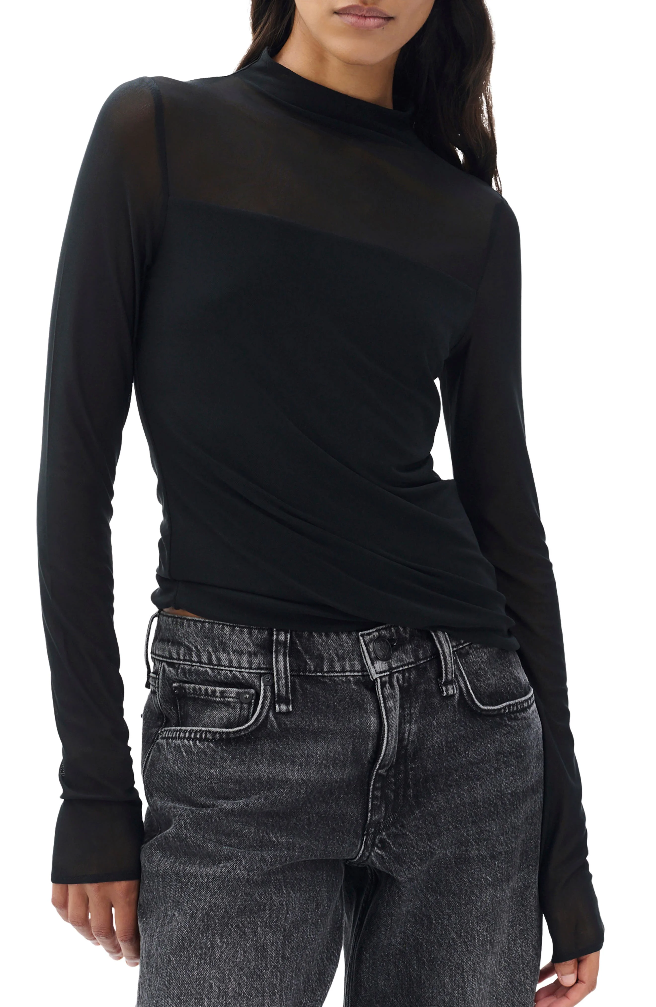rag & bone Luca Long Sleeve Mesh Top in Black at Nordstrom