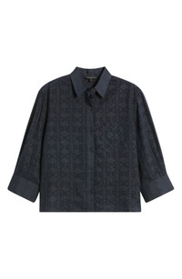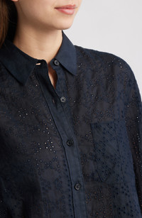 This airy ramie shirt enhances its breathability with eyelet embroidery throughout its relaxed silhouette. It's framed by cuffed three-quarter sleeves to give you a polished look that's ideal for the office and beyond. Front button closure Spread collar Three-quarter sleeves with two-button cuffs 100% ramie Machine wash, dry flat Imported