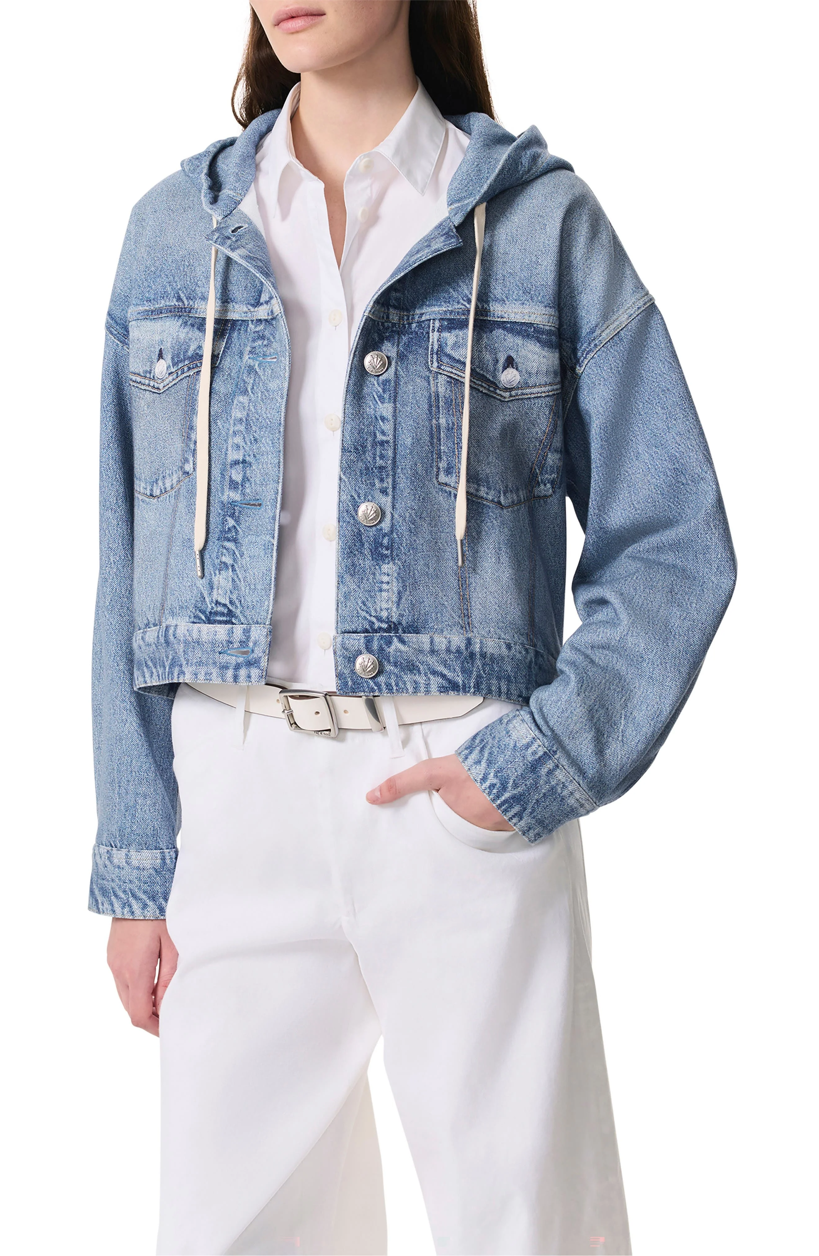 rag & bone rb Miramar Hooded Trompe l'Oeil Faux Denim Terry Trucker Jacket in Coney at Nordstrom