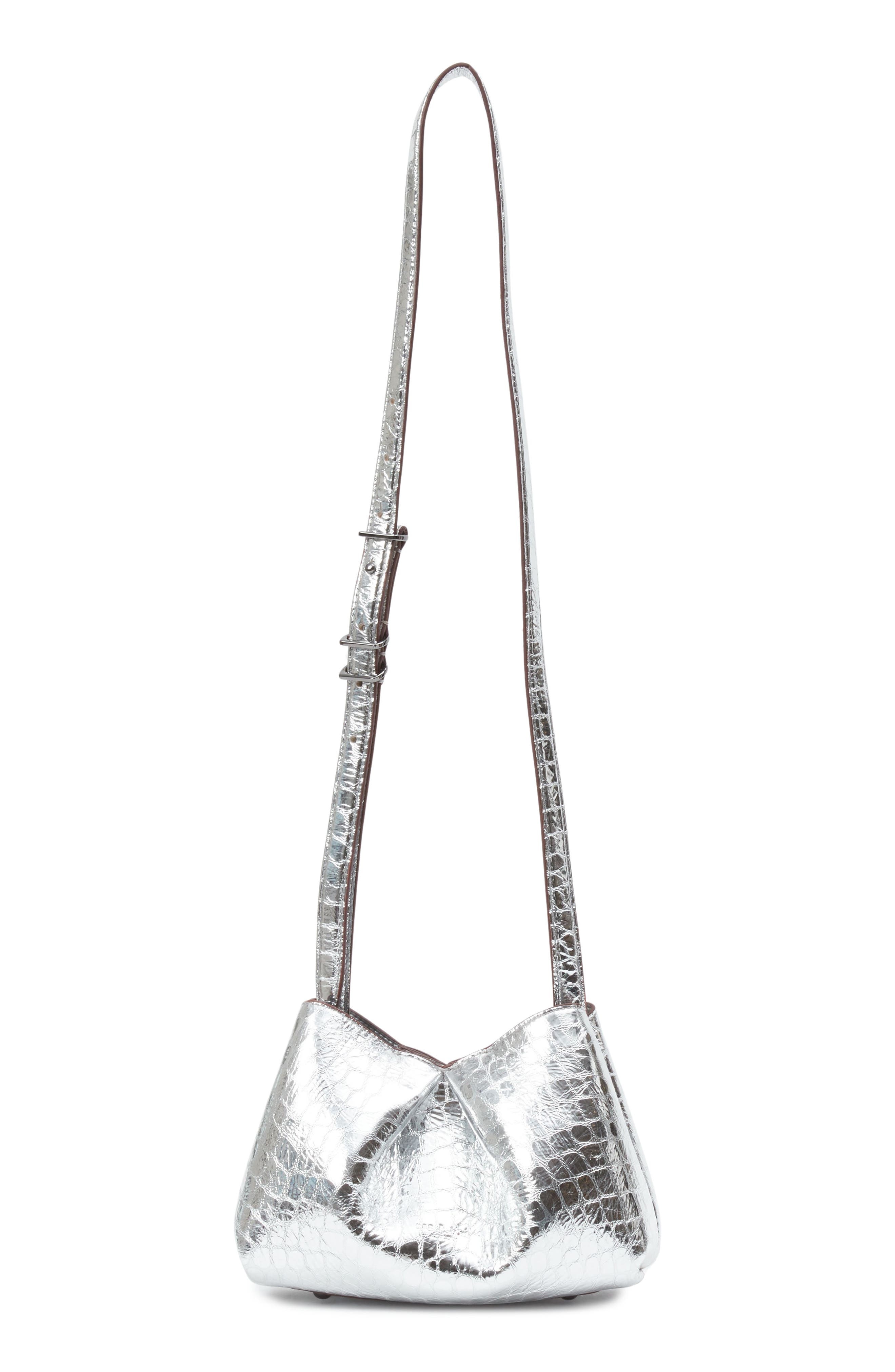 rag & bone Small Bloom Croc Embossed Metallic Leather Crossbody Bag in Silver at Nordstrom