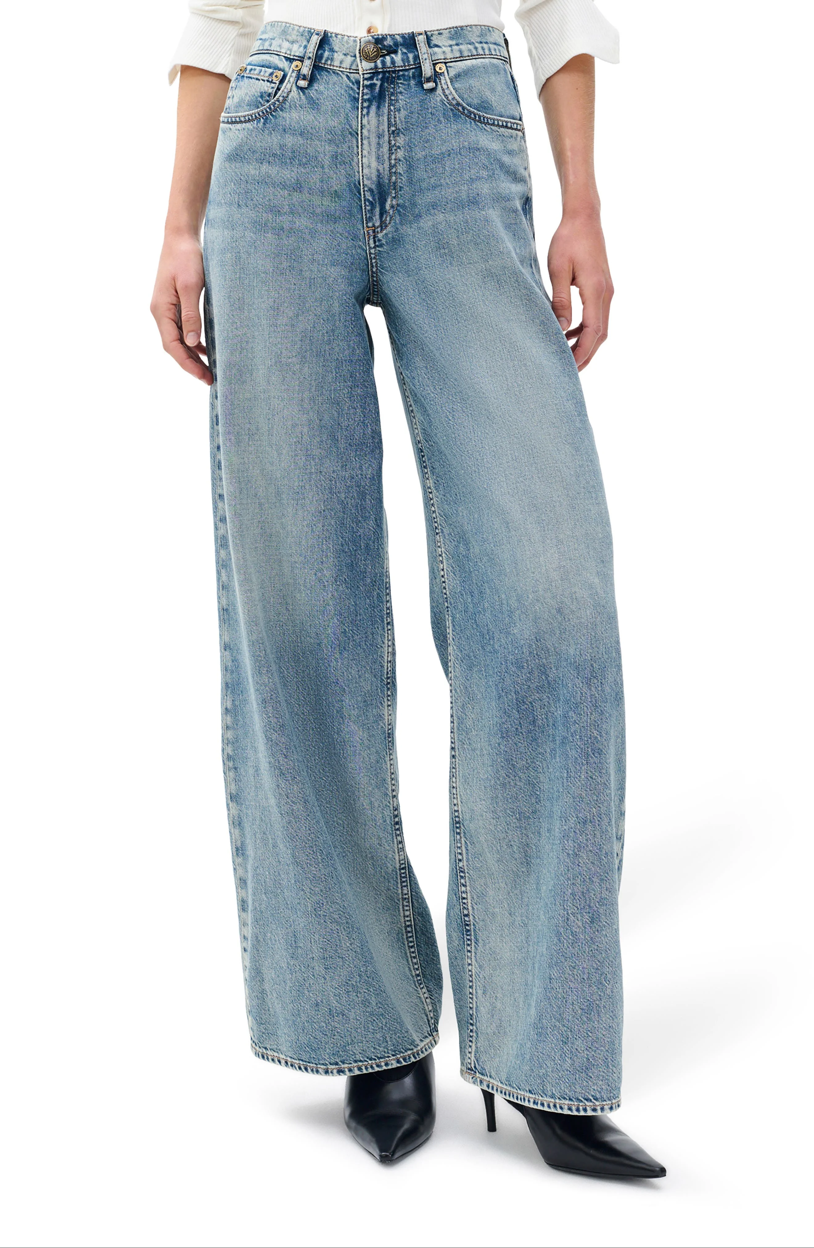 rag & bone Sofie Wide Leg Cotton Blend Jeans in Theo at Nordstrom