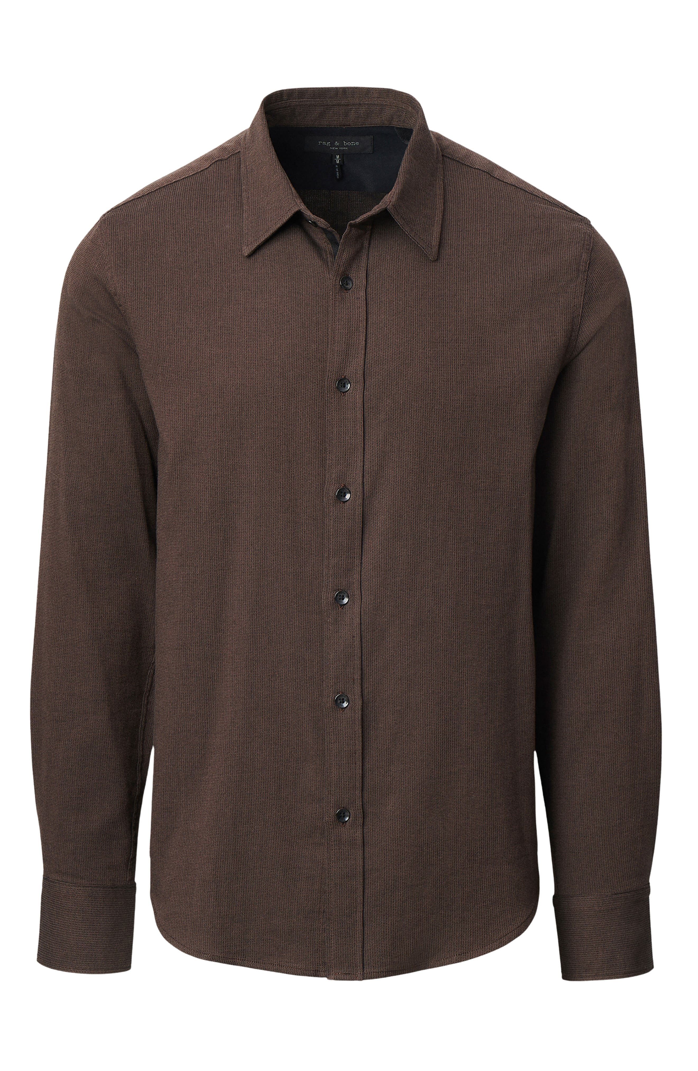 rag & bone Tomlin Cotton Dobby Button-Up Shirt in Dark Brown at Nordstrom
