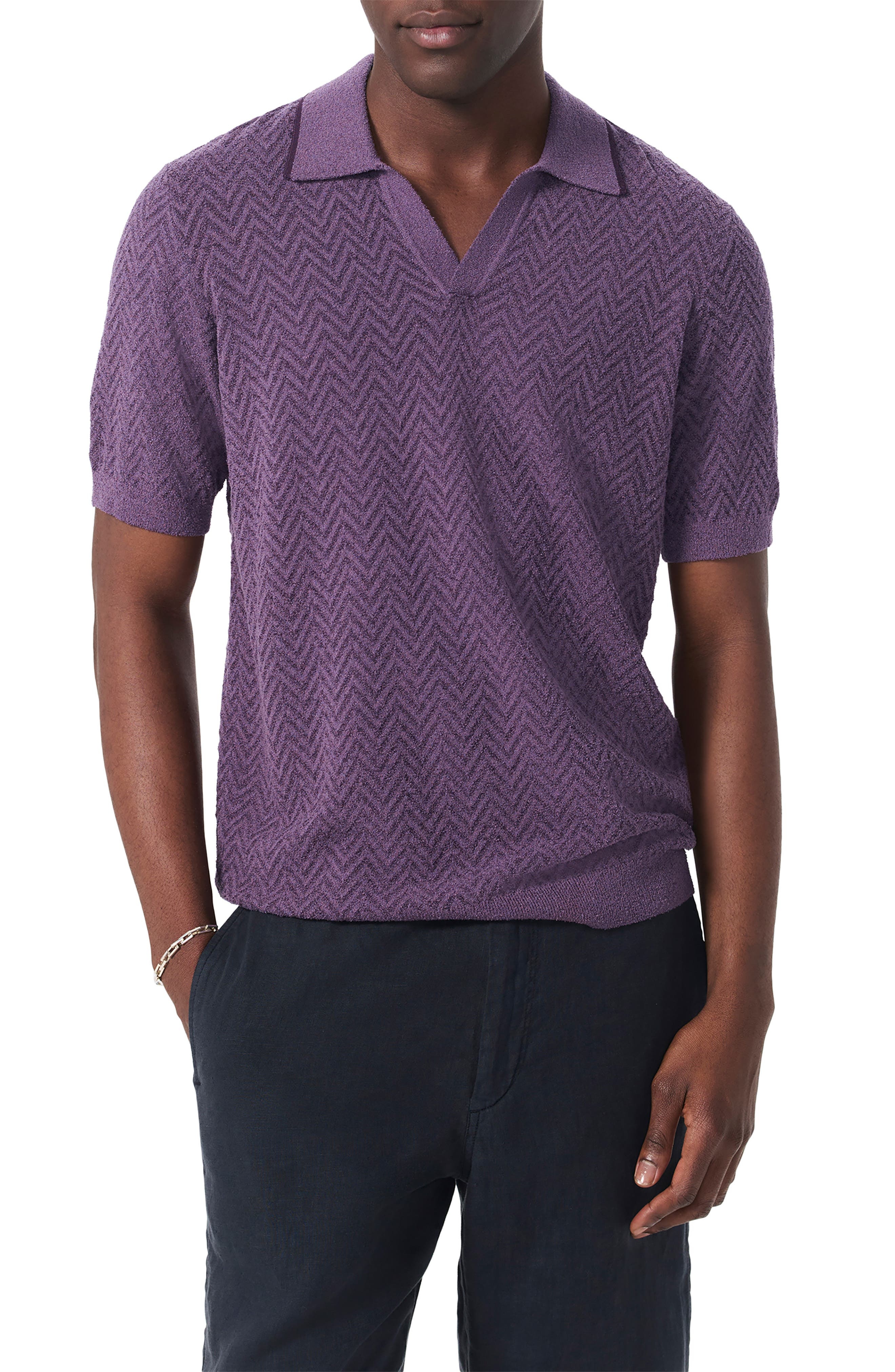 rag & bone Zuma Johnny Collar Chevron Terry Cloth Polo in Purple at Nordstrom