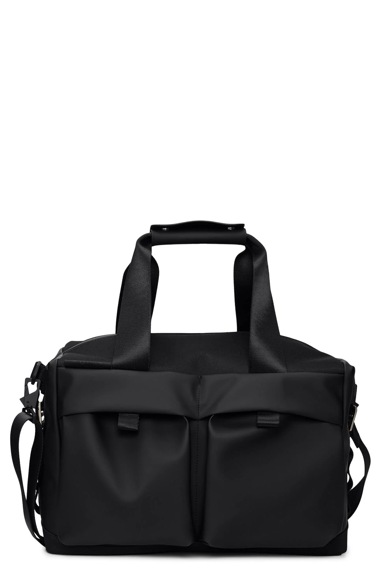 Hit the road with a small bag that's ready to go big before you go home by packing plenty into a compact silhouette.Waterproof signature PU fabric and woven polyester- Coated zip closure secured by adjustable c-clips- Two large front pockets with velcro closure- Single main compartment- Gray lining for easy overview of contents- Two internal slip pockets- Internal secure zip pocket- Internal key storage loop- Pockets on side panels for smaller/worn items- Adjustable webbing shoulder strap- Carry handles in webbing with handle wrap- Trolley slip pocket in PU on backside Top zip closure; C-clip closure Top carry handles with handle wrap; adjustable removable shoulder strap Exterior front pockets with hook-and-loop closure; exterior side pockets; interior slip pockets; interior zip pocket Interior key loop Polyester/polyurethane Hand wash, line dry Imported