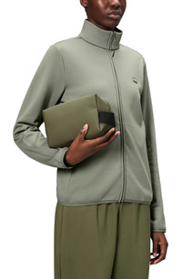 This minimalist toiletry bag crafted from signature waterproof fabric features a single compartment interior designed to hold your necessities. Top zip closure Waterproof Interior wall pocket Lined Polyester with polyurethane coating Imported