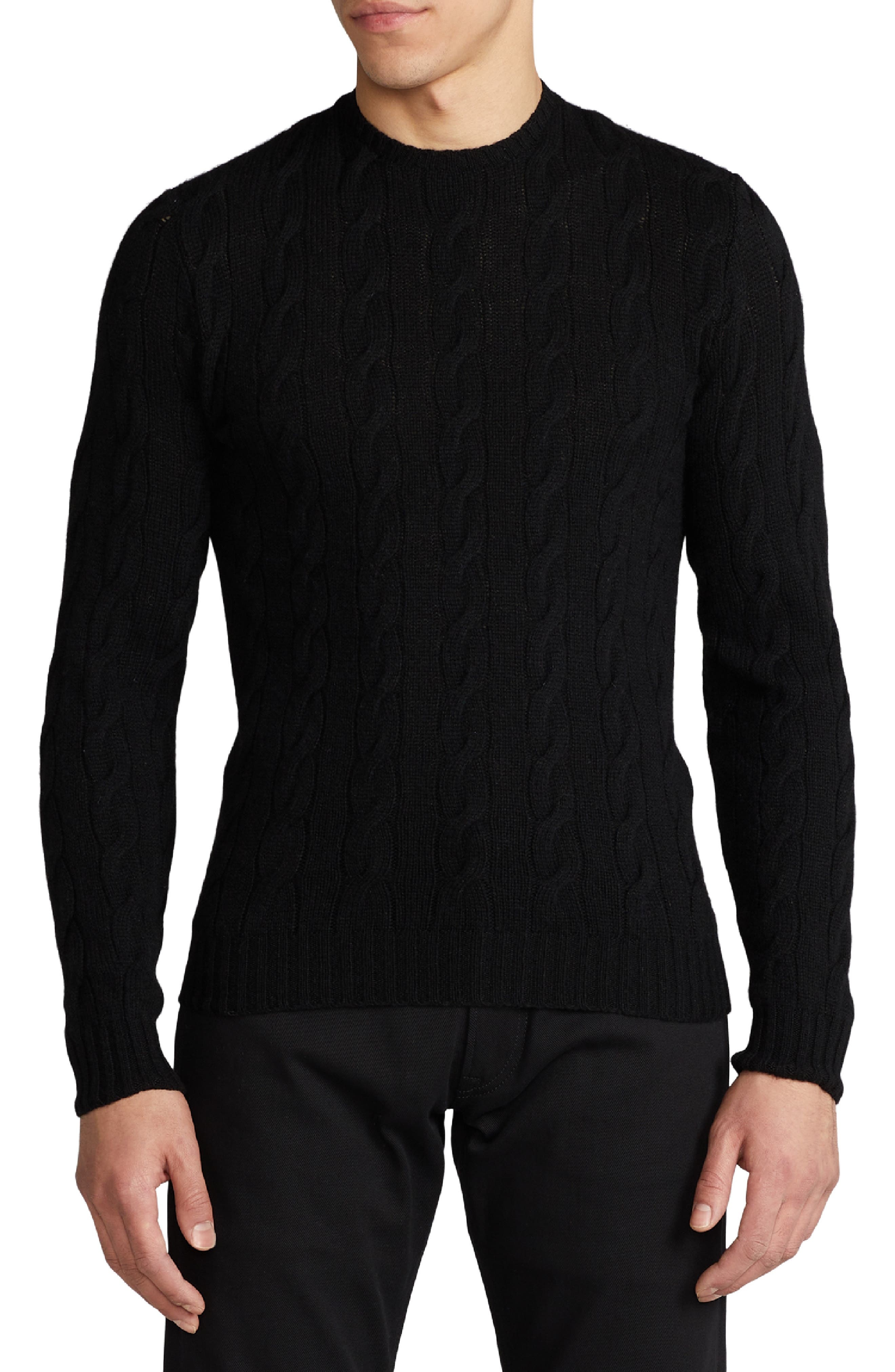 Only the best fibers from Mongolian cashmere goats are spun by artisans into the yarns used to craft this cable-knit sweater in a classic crewneck silhouette. Crewneck Long sleeves 100% cashmere Dry clean Made in Italy Men's Designer Clothing