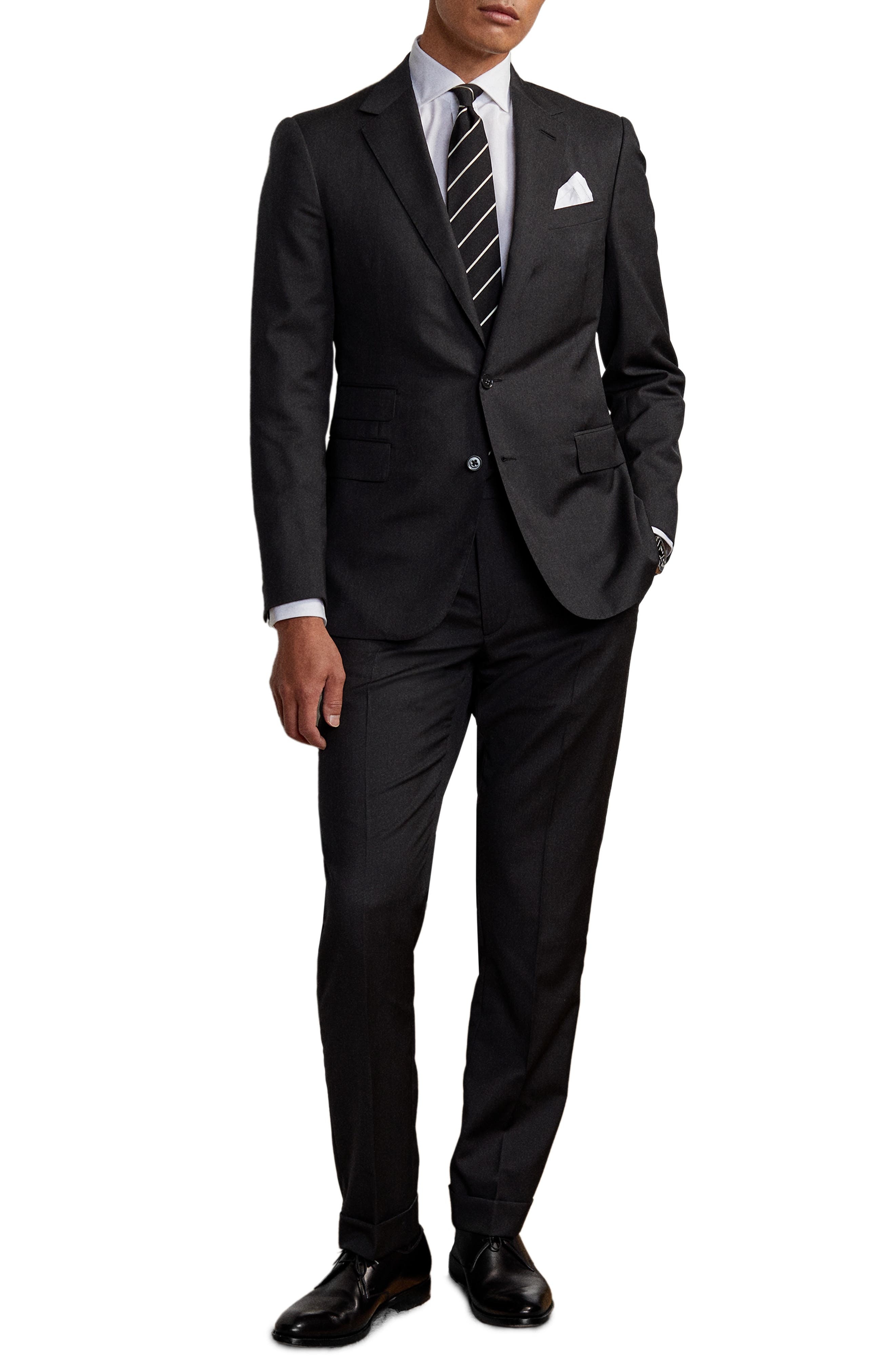 With its impeccable tailoring and versatile appeal, this suit is hand-cut from the label's custom-developed wool serge to exude formal sophistication. Jacket has notched lapels; nonfunctional four-button cuffs; chest welt pocket; front welt pockets; side vents Trousers have zip fly with hook-and-bar closure; front slant pockets; back button-welt pockets; adjustable waist tabs Jacket is lined; trousers are lined to the knee 100% wool Dry clean Made in Italy Designer Clothing