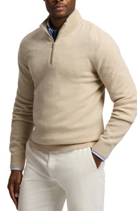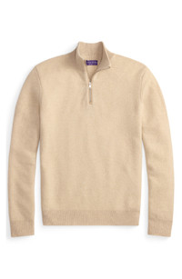 Ralph Lauren Purple Label Bird's Eye Cashmere Half Zip Sweater in Champagne Melange at Nordstrom