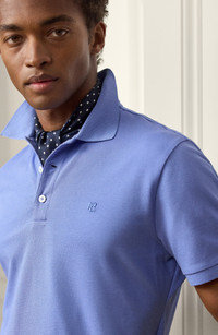 Double-mercerized for enhanced durability and color retention, this breathable Italian-cotton pique polo is refined with mother-of-pearl buttons and an embroidered logo. Button half placket Rib collar Short sleeves with ribbed cuffs 100% cotton Dry clean Made in Italy Designer Clothing
