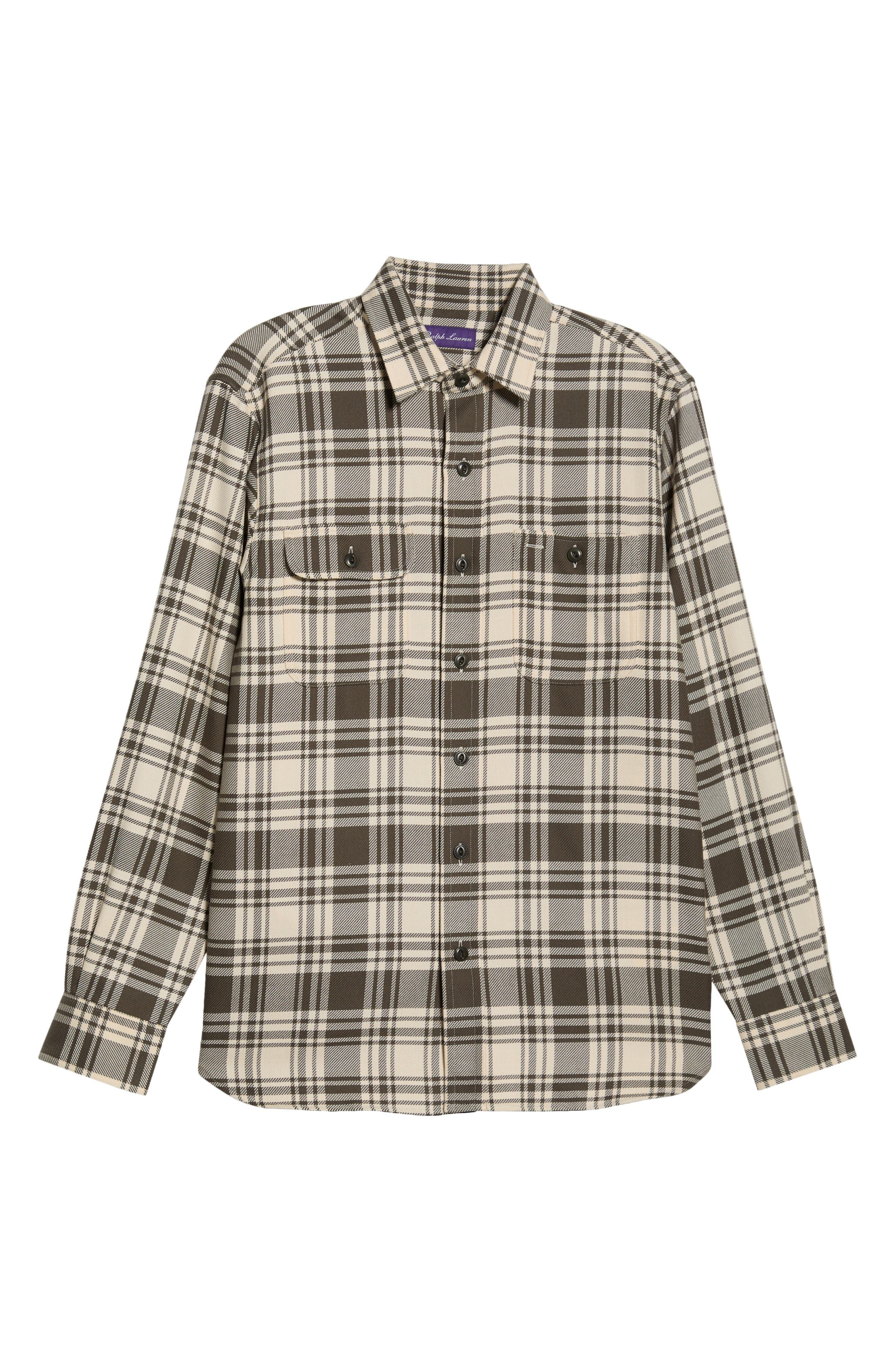Ralph Lauren Purple Label Plaid Cotton Button-Up Shirt in Thicket Moss/Cream at Nordstrom