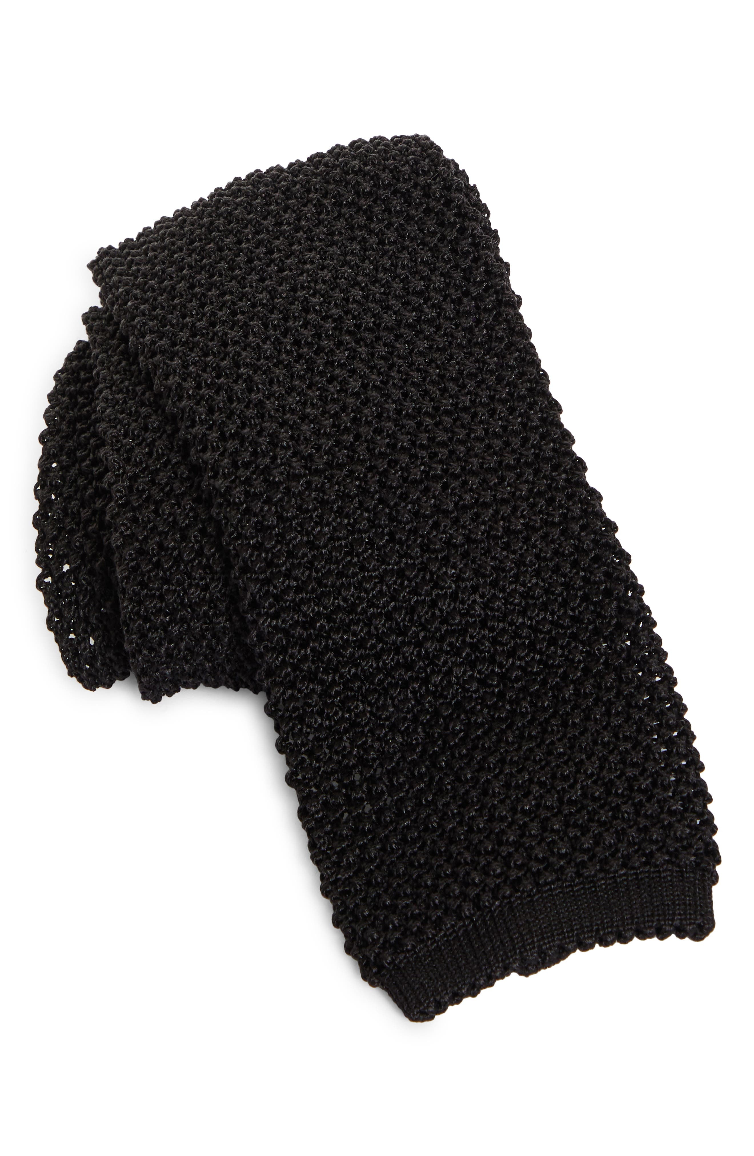 Fine ribbed trim finishes the ends of this solid skinny tie hand-knit in Italy from lustrous silk. 2 1/2" width 100% silk Dry clean Made in Italy