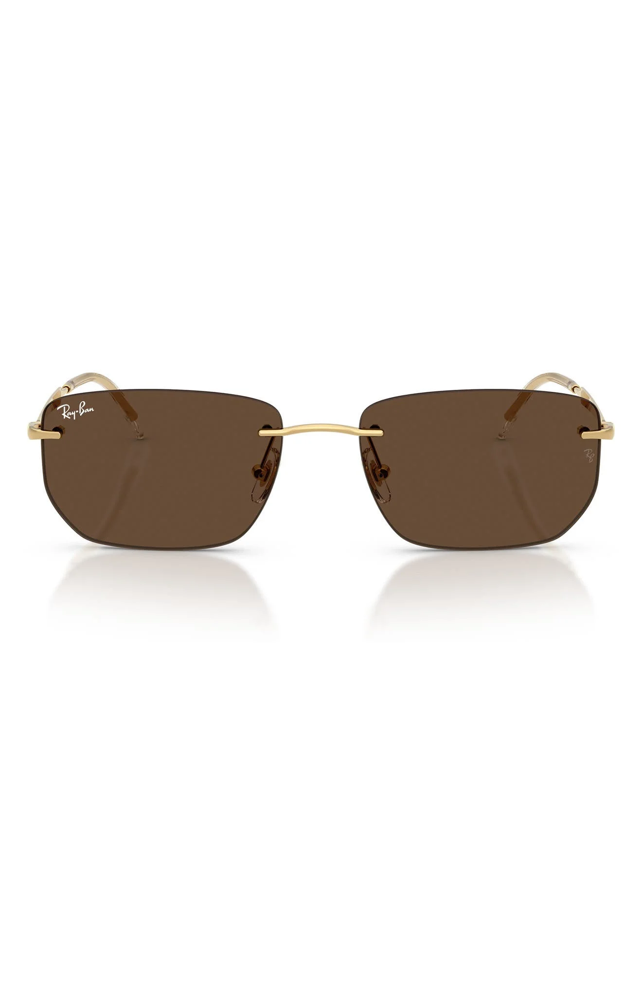 Ray-Ban 56mm Rimless Rectangular Sunglasses in Arista /Dark Brown at Nordstrom