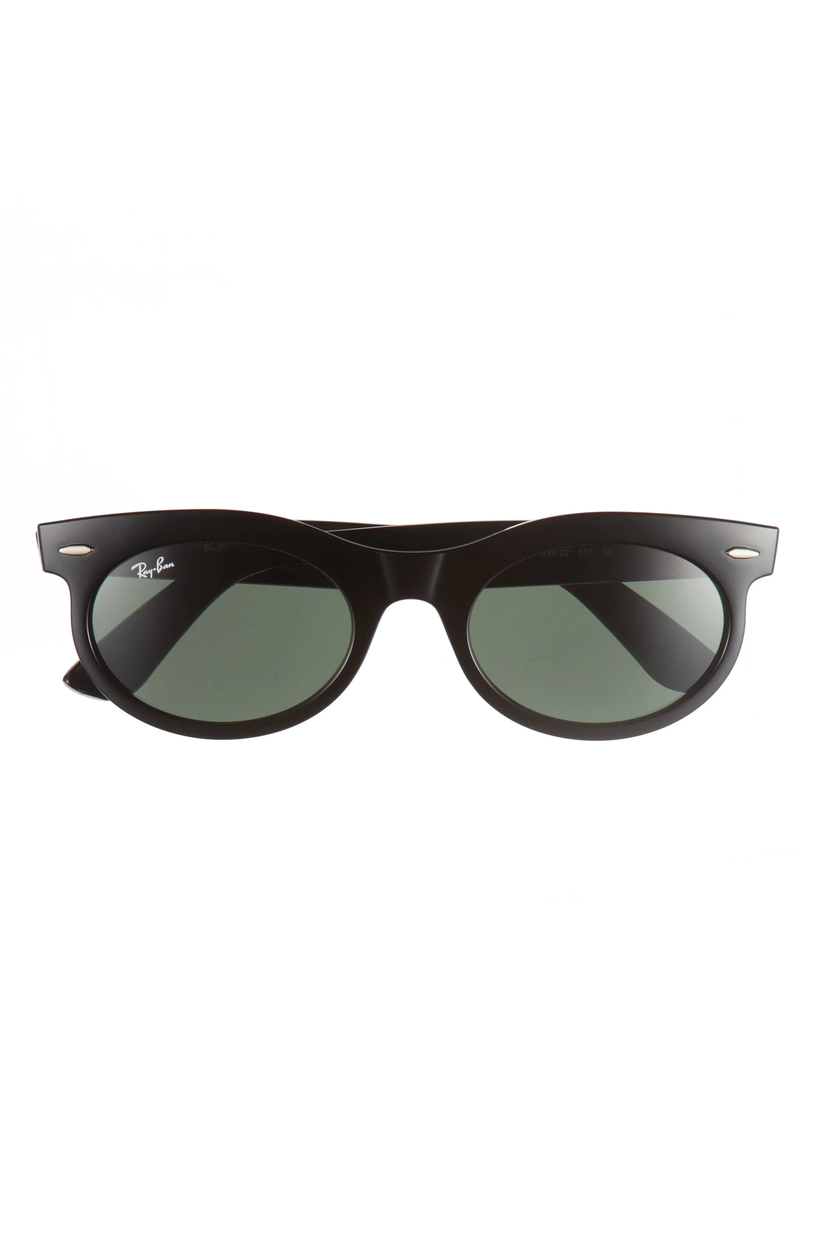 A curved browline softens the bold silhouette of the iconic Wayfarer sunglasses. 53mm lens width; 22mm bridge width; 150mm temple length 100% UV protection Plastic Imported