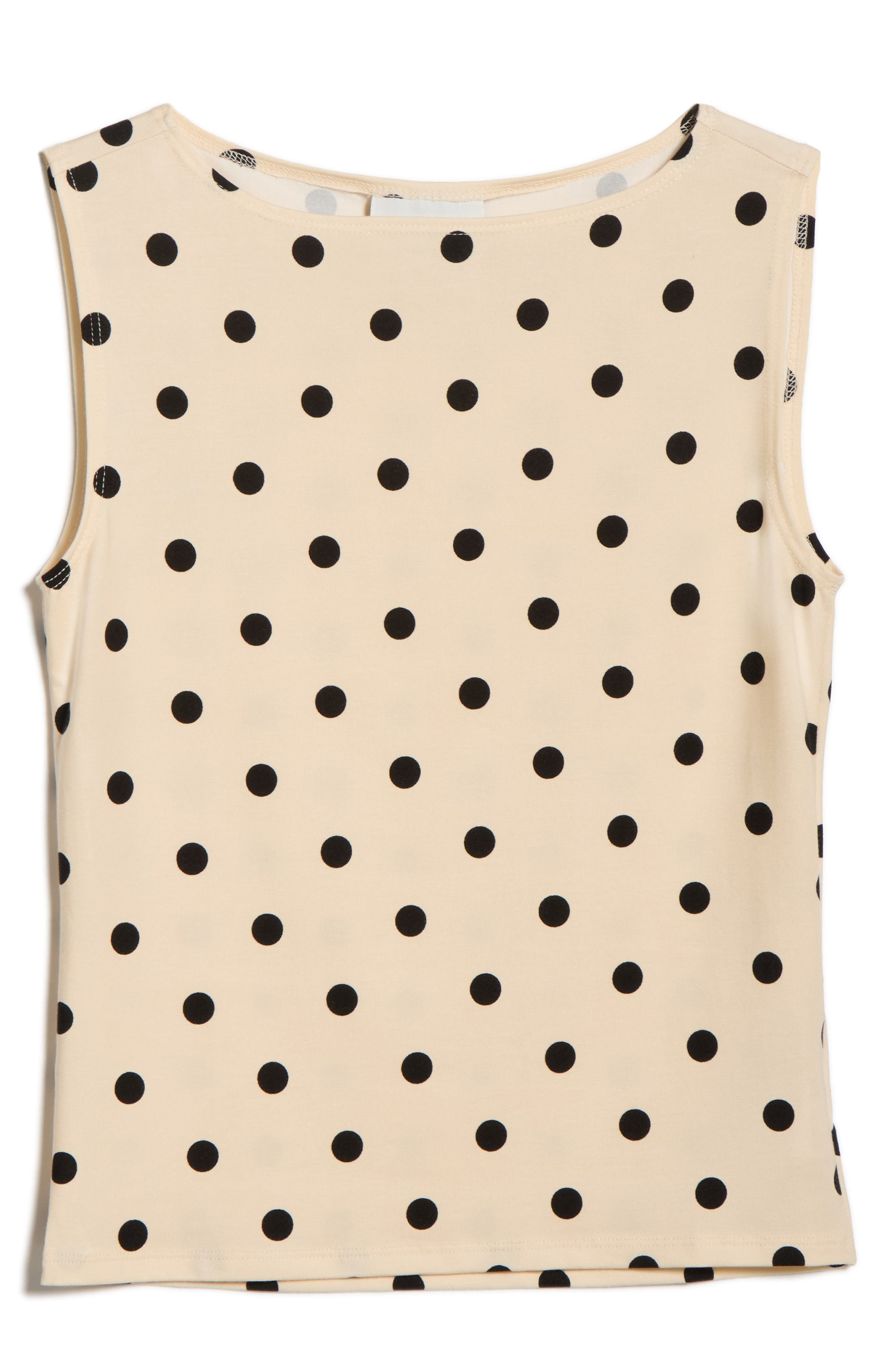 Celebratory dots enliven this soft knit top cut in a sleeveless silhouette for work-to-weekend layering. Bateau neck Sleeveless 88% Tencel™ lyocell, 12% spandex Tencel lyocell is a more-sustainably produced fiber made with closed-loop processing Machine wash, tumble dry Imported