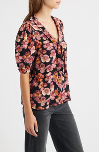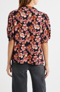 A print of painterly pansies amplifies the charm of this lightweight top designed with a sweet tie accent at the neckline and elbow-length puff sleeves. 23" length V-neck with ties Elbow-length sleeves with smocked-back cuffs 53% viscose, 47% Lenzing™ EcoVero™ viscose Lenzing EcoVero viscose is a more-sustainably produced fiber made using pulp made from renewable wood sources Dry clean Imported