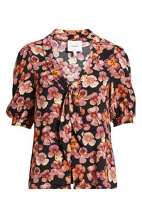 Reformation Joelle Floral Tie Neck Button-Up Top in Pansy at Nordstrom