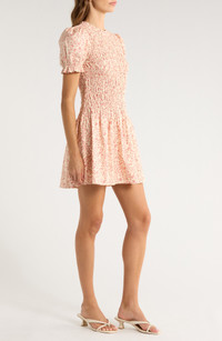 Reformation Leannah Smocked Stretch Organic Cotton Minidress in Corrine at Nordstrom