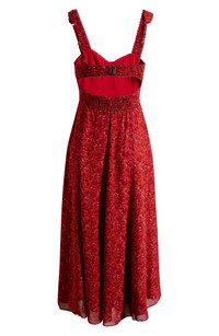 Make a vibrant and sophisticated statement in this A-line midi dress featuring a gauzy floral-print overlay. 41 1/2" length (size 4) Hidden back-zip closure Adjustable straps Sweetheart neck Lined 100% viscose Dry clean Made in the USA