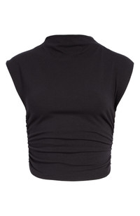 Stretch-hinted organic cotton offers exceptional comfort in this ruched crop top with an elegant mock neckline. 19" length (size Medium) Mock neck Sleeveless 88% organic cotton, 12% spandex Machine wash, tumble dry Imported