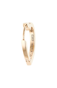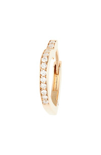 This single huggie hoop earring is handcrafted in a heart shape from 18-karat rose gold using the technique of lost-wax casting and sparkles with an inset of diamond pave. Sold as a single earring Hinge with snap-post closure Total diamond weight: 0.06ct. Color: G Clarity: VS 18k gold/diamond Made in Italy >Diamond Guide