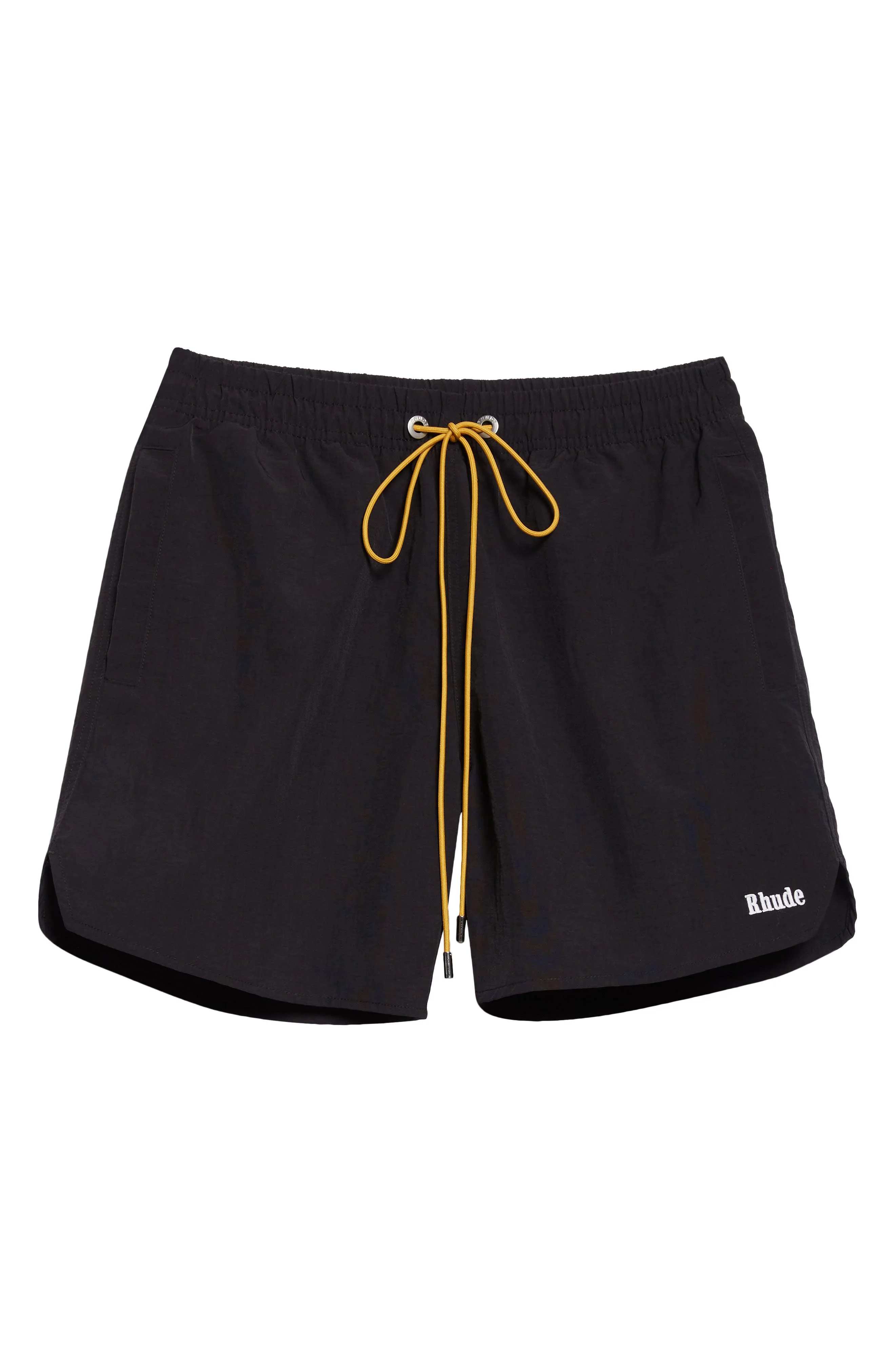 Rhude Classic Logo Nylon Swim Trunks in Black/White at Nordstrom