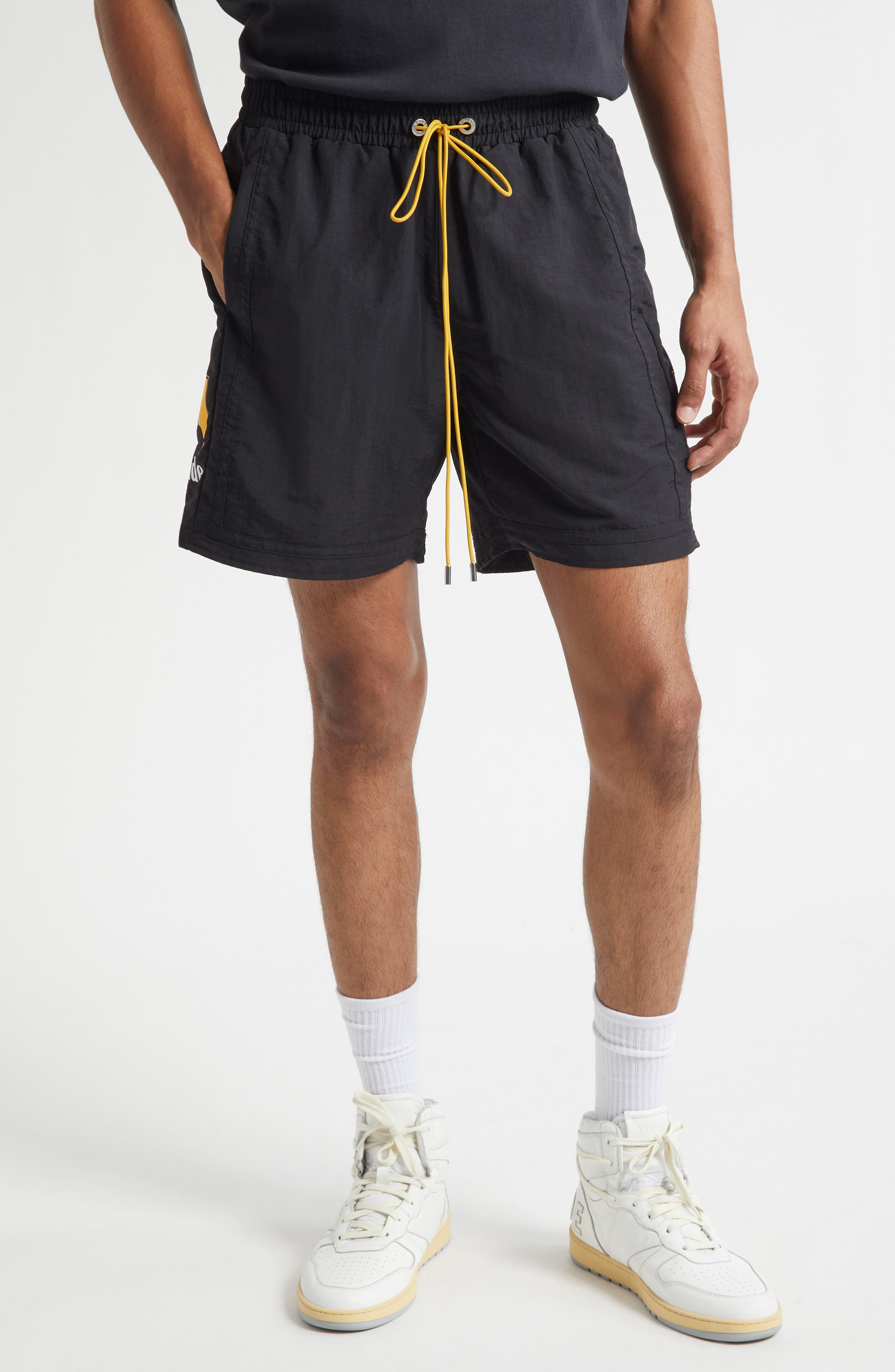 Rhude Moonlight Logo Nylon Drawstring Shorts in Black /Yellow /White at Nordstrom