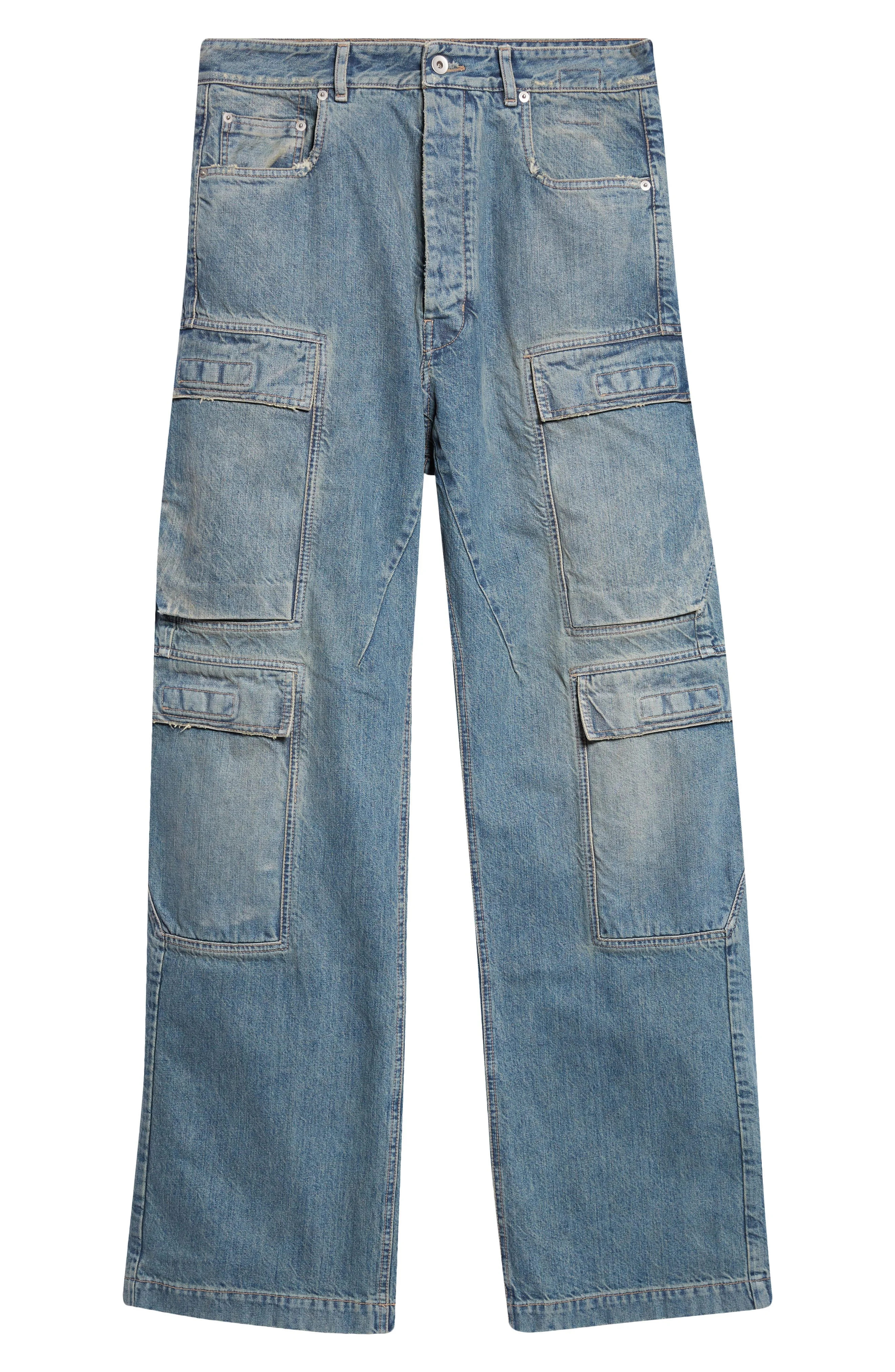 Rick Owens DRKSHDW Distressed Straight Leg Cargo Jeans in Washed Indigo at Nordstrom