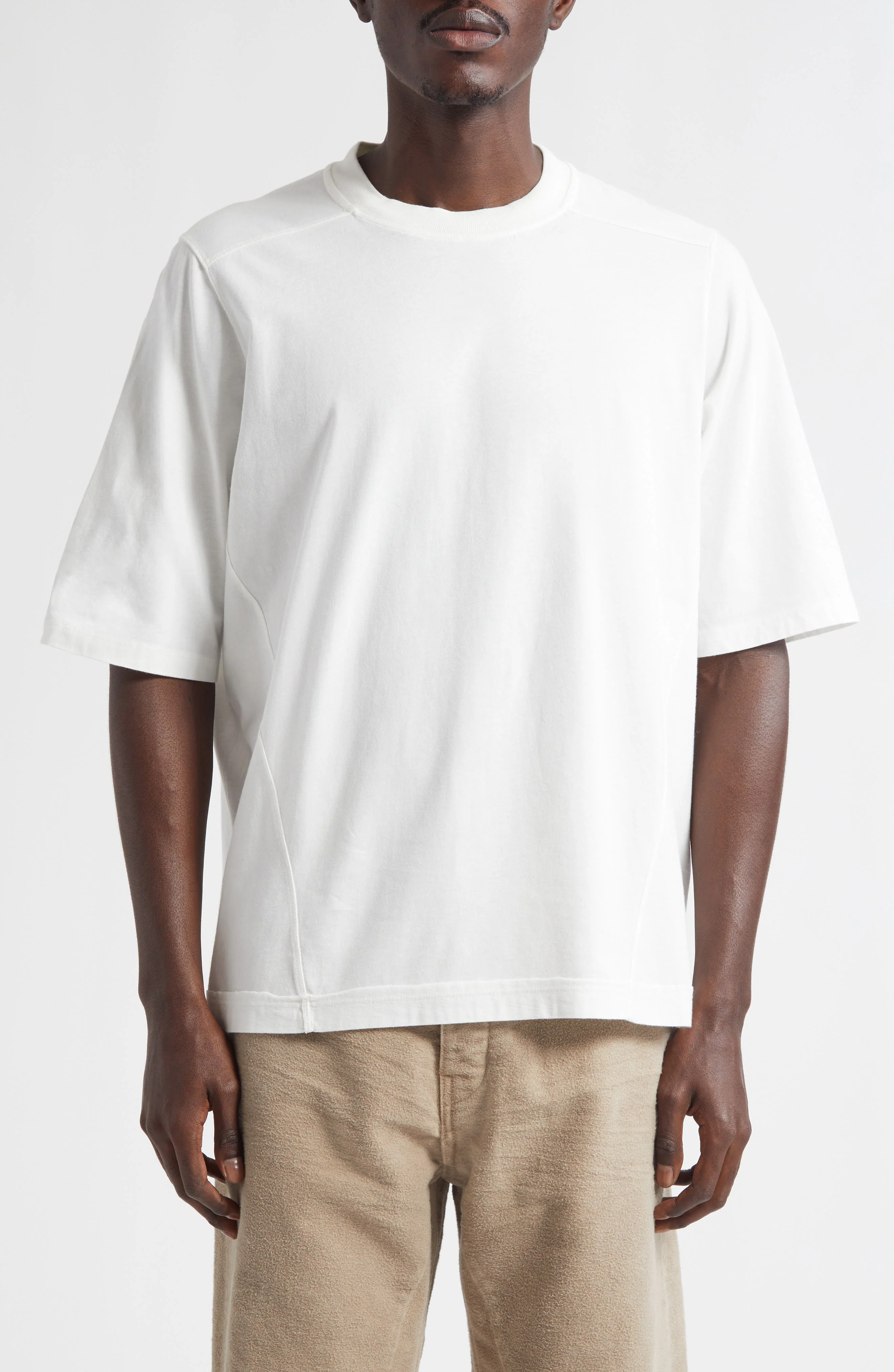 The master of shadow turns the volume all the way up with a supremely oversized cotton T-shirt built on line and proportion. Side seams pitch forward to redraw the torso while the signature center back seam and leveled shoulders stamp it with house DNA. Crewneck Elbow-length sleeves 100% cotton Dry clean or hand wash, dry flat Made in Portugal Designer Clothing