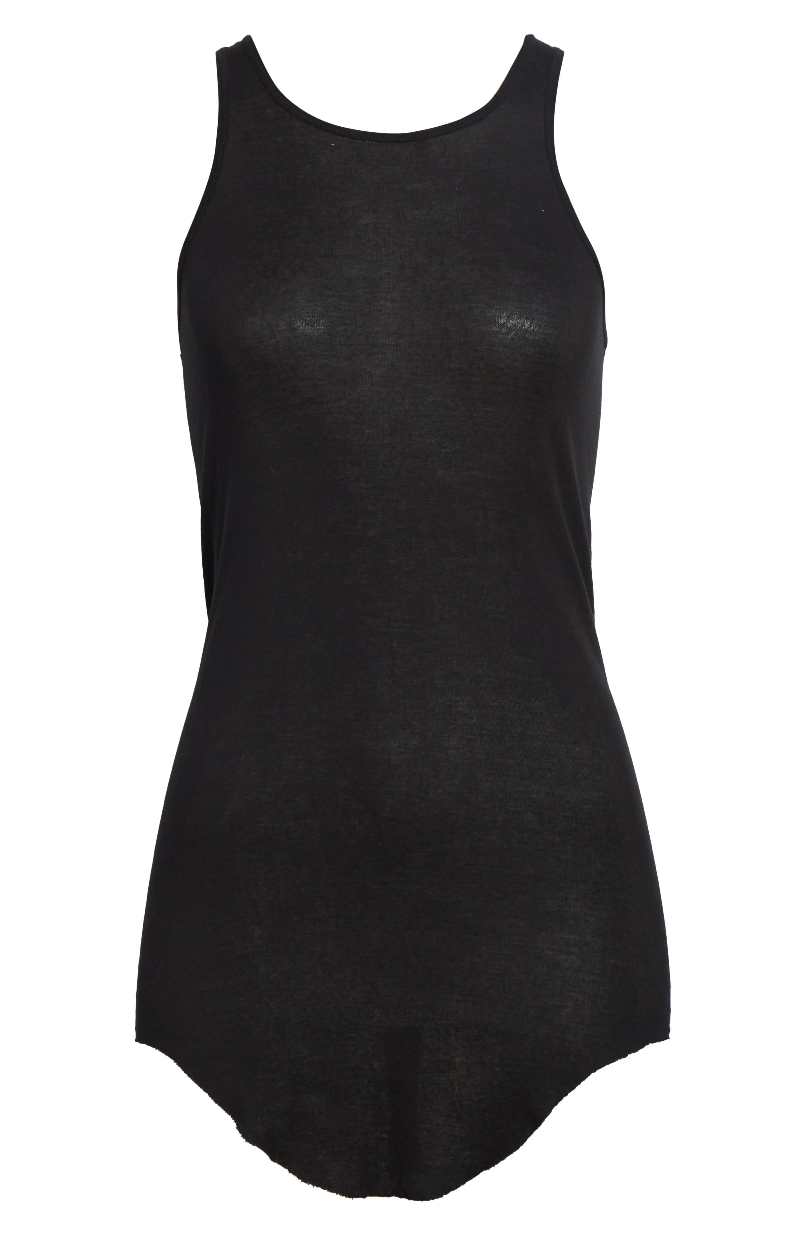 The iconoclastic designer takes a more subdued approach to his typical extremes with this raw-edged Italian-cotton jersey tank minimally marked by a signature seam tracing the spine—an inconspicuous whisper to fellow Rick Owens fans. Scoop neck Racerback Curved hem 100% cotton Dry clean or hand wash, dry flat Made in Italy Designer Clothing
