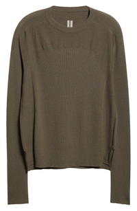 Embrace the softer side of Rick Owens in this trim Italian-wool sweater that contours to your shape in flexible ribbing. A signature knit line runs down the spine—an inconspicuous whisper to fellow Owens fans. Crewneck Long sleeves Side slits 100% virgin wool Dry clean or hand wash, dry flat Made in Italy Designer Clothing