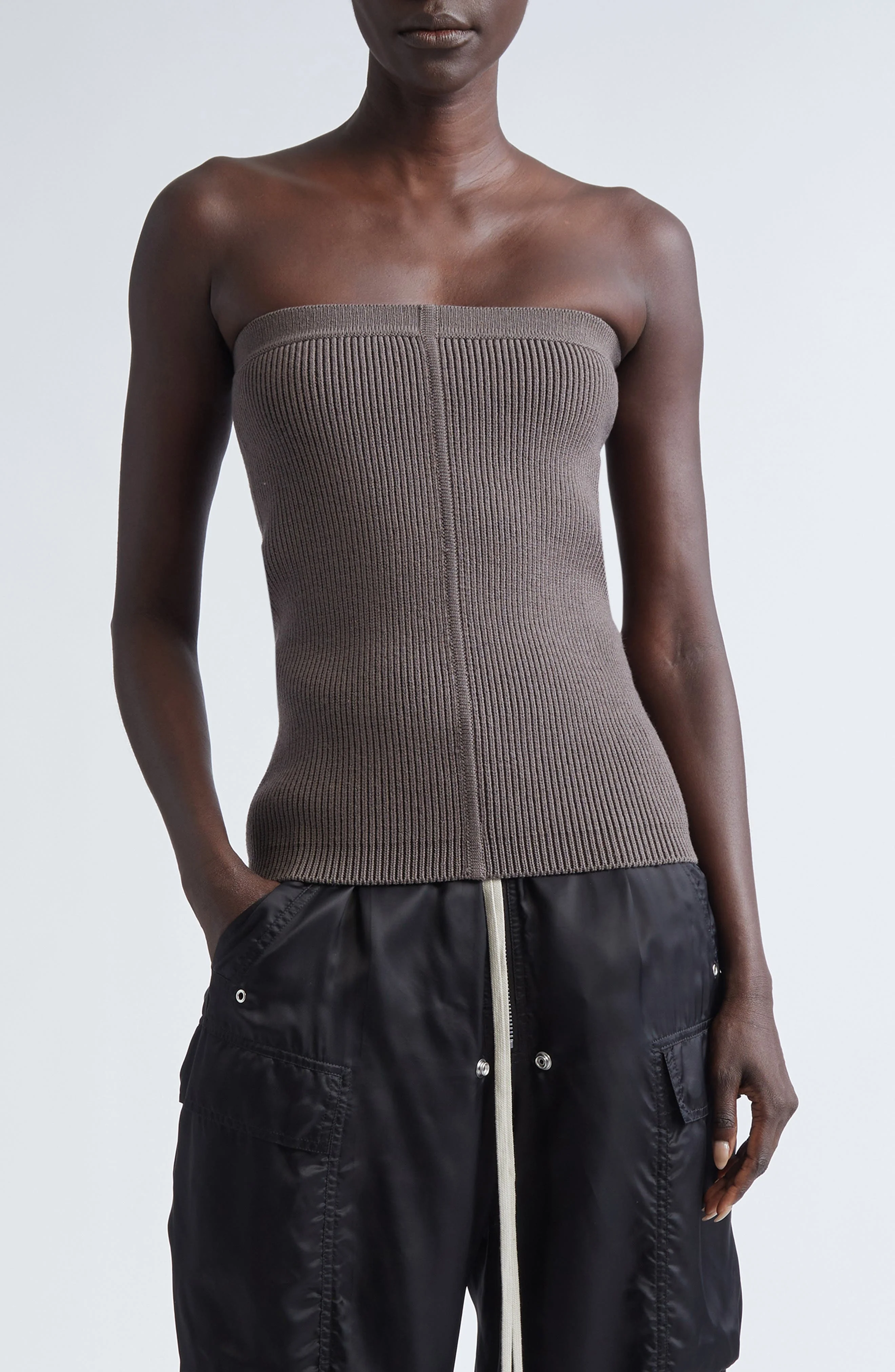 Rick Owens Rib Virgin Wool Blend Tube Top in Darkdust at Nordstrom