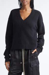 Rick Owens Tommy Alpaca & Wool Blend V-Neck Sweater in Black at Nordstrom
