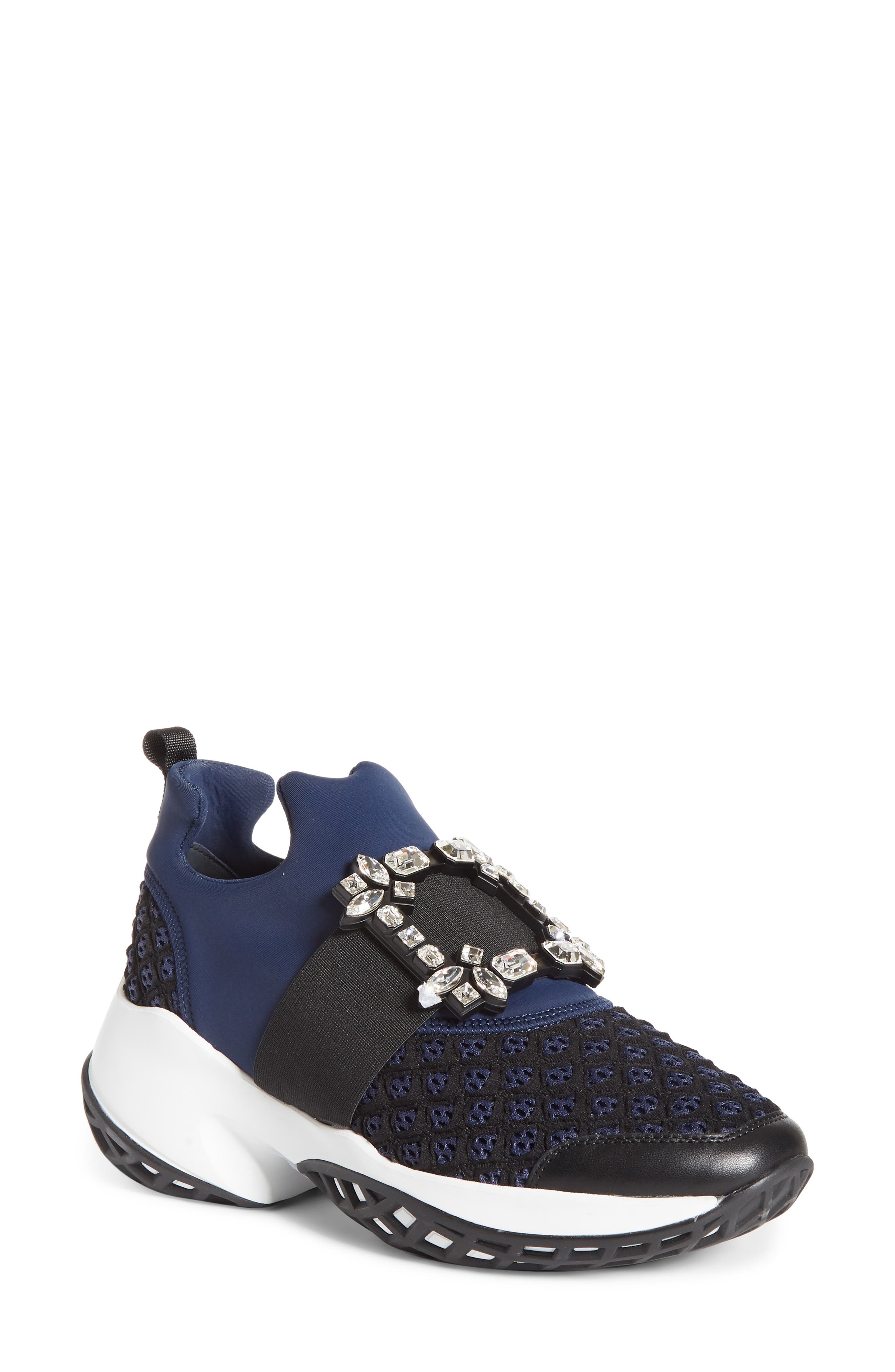 Roger Vivier Viv Crystal Buckle Slip-On Sneaker in Navy/Black at Nordstrom