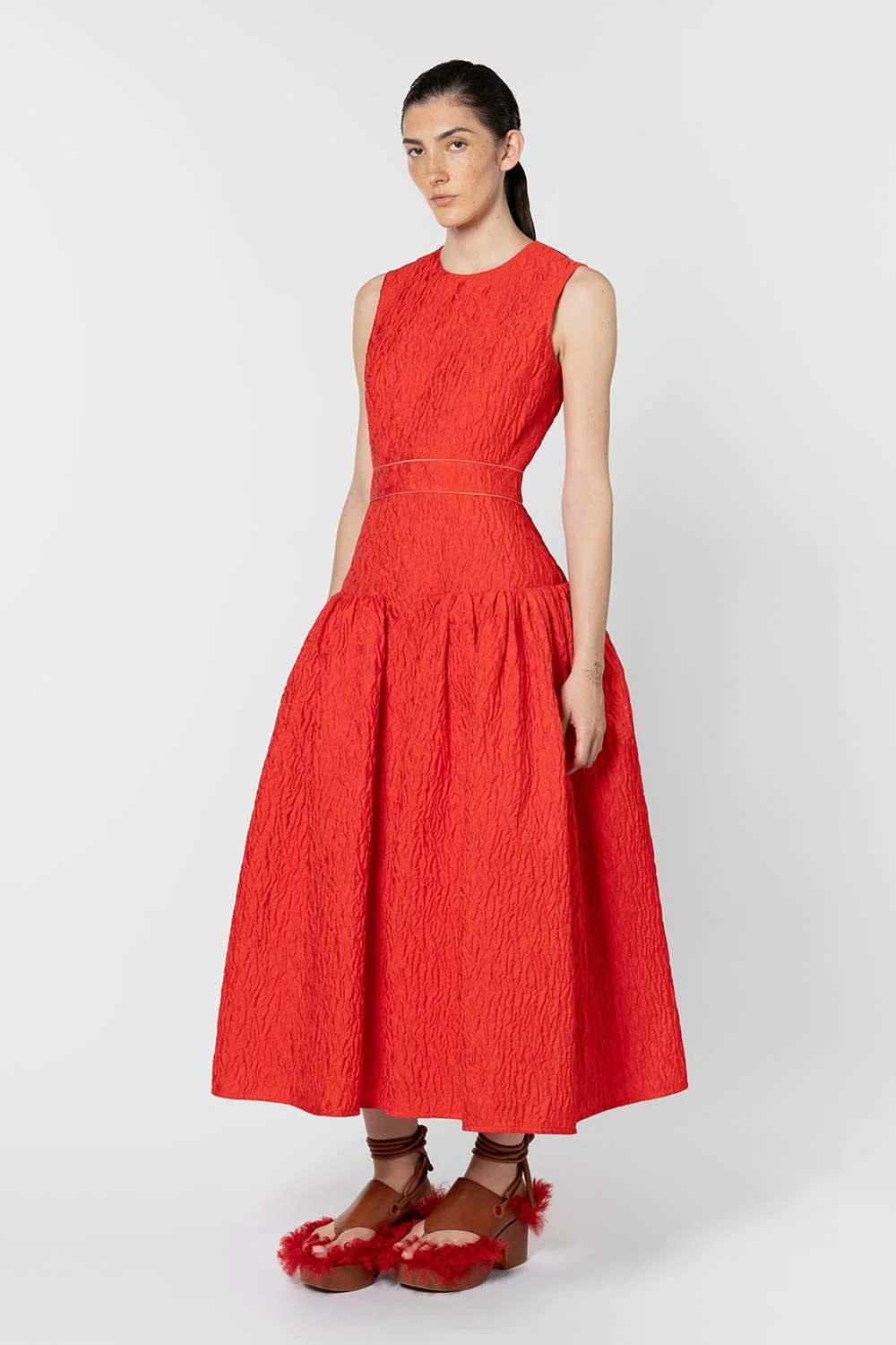 Roksanda Aya Cloque Midi Dress in Rouge at Nordstrom