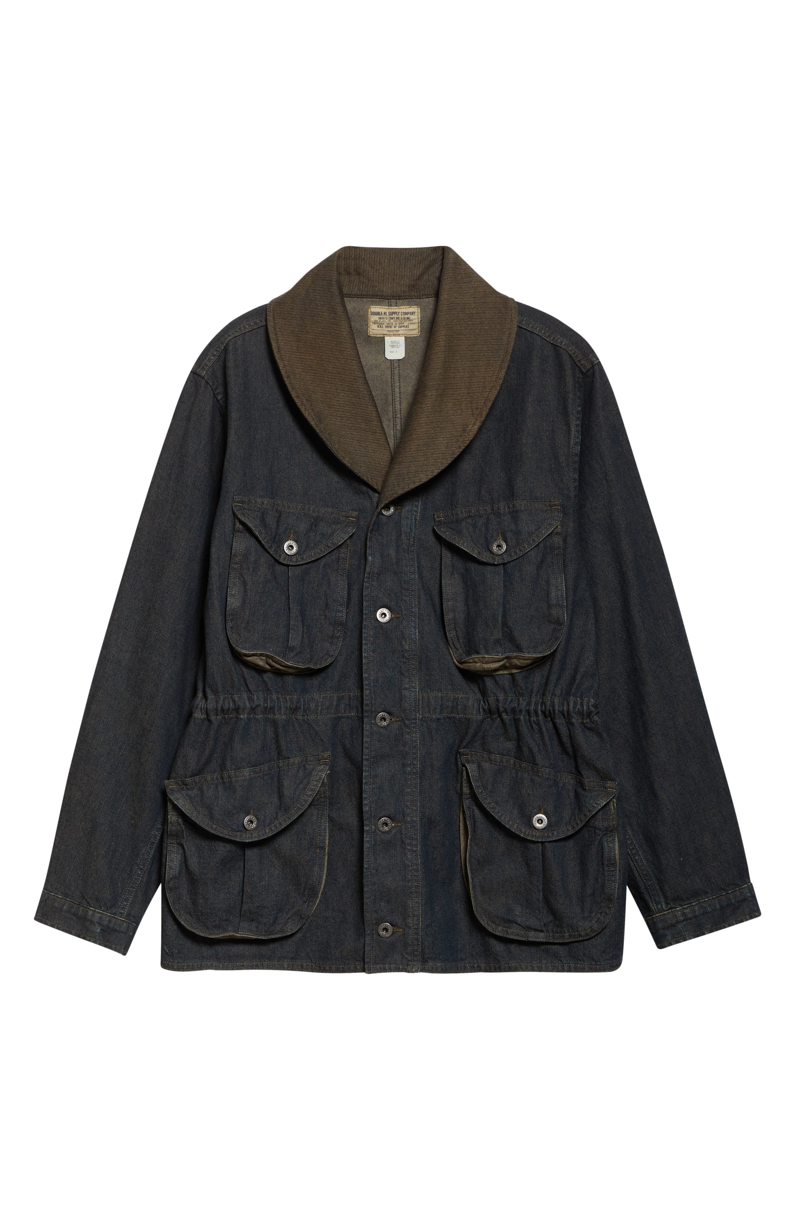 Subtly faded indigo denim woven from cotton and linen relaxes a jacket designed with a wide shawl collar of midwale corduroy to top off the styling with softness and warmth. A layerable fit and a quartet of bellows pockets bring essential function to the easy-wearing look. Front button closure Shawl collar Button cuffs Chest and front button-flap bellows pockets Internal drawcord waist 85% cotton, 15% linen Machine wash, line dry Imported Designer Clothing