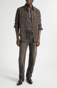 Double RL Slim Fit Check Western Shirt in Brown/Tan at Nordstrom