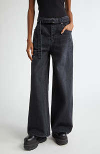 Chitose Abe blends a streamlining belt with the baggy silhouette seen all over the 2024 runways in these wide-leg jeans cut from rigid nonstretch denim. 31" inseam; 24" leg opening; 12 1/2" front rise; 16" back rise (size 0) Zip fly with button closure Five-pocket style 100% cotton Machine wash, line dry Made in Japan Designer Clothing Asian & Pacific Islander Owned/Founded