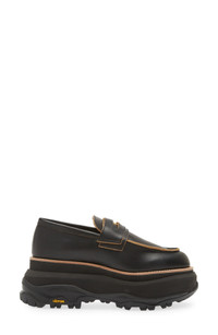 Signature spliced style turns a penny loafer into a lofted sporty style with a treaded Vibram® sole and chunky platform. 2 3/4" (69mm) heel; 2 1/2" platform (size 39) Leather upper and lining/rubber sole Imported Designer Shoes Asian Owned/Founded