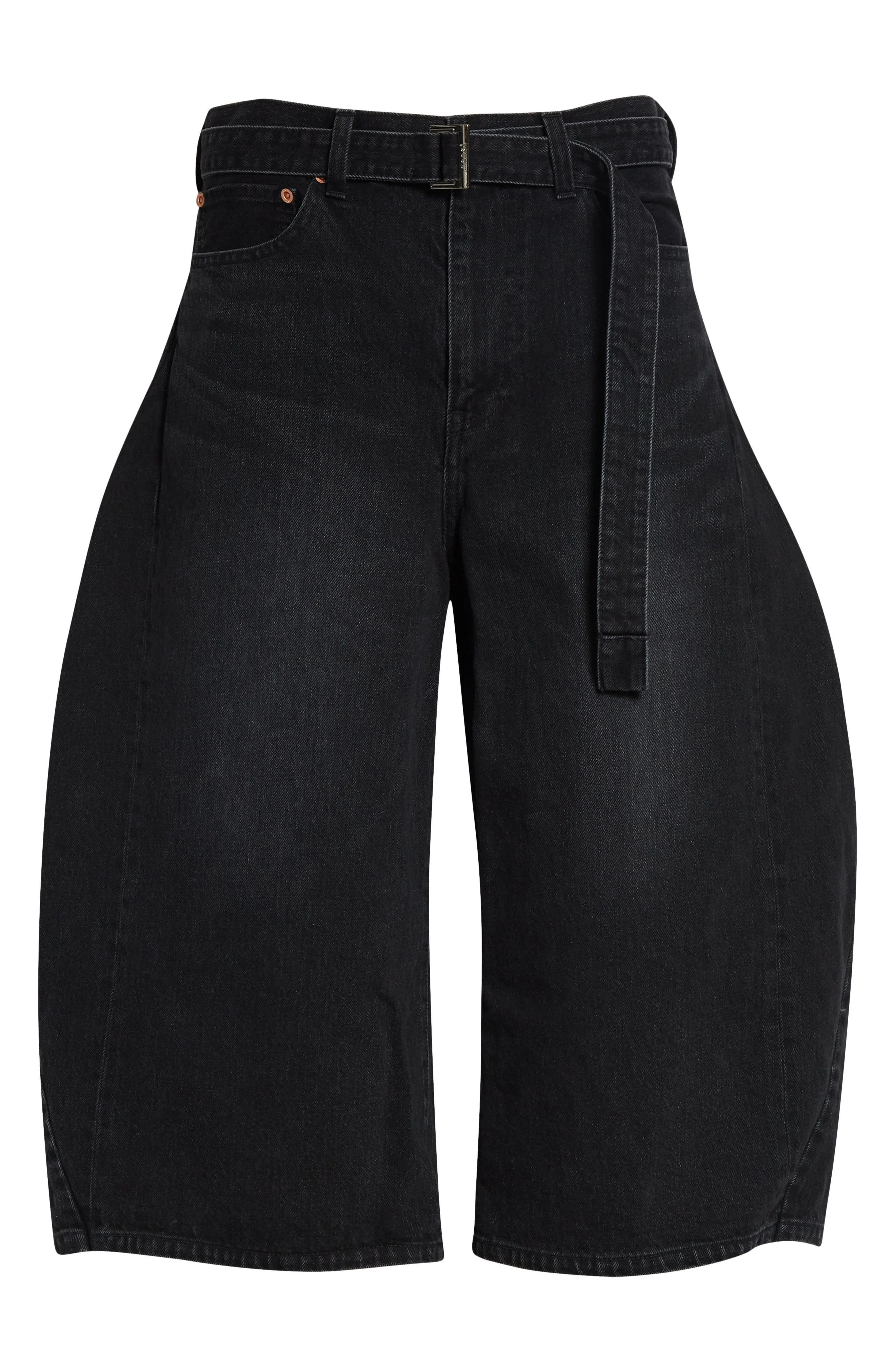 Sacai Belted Crop Denim Barrel Leg Jeans in Black at Nordstrom