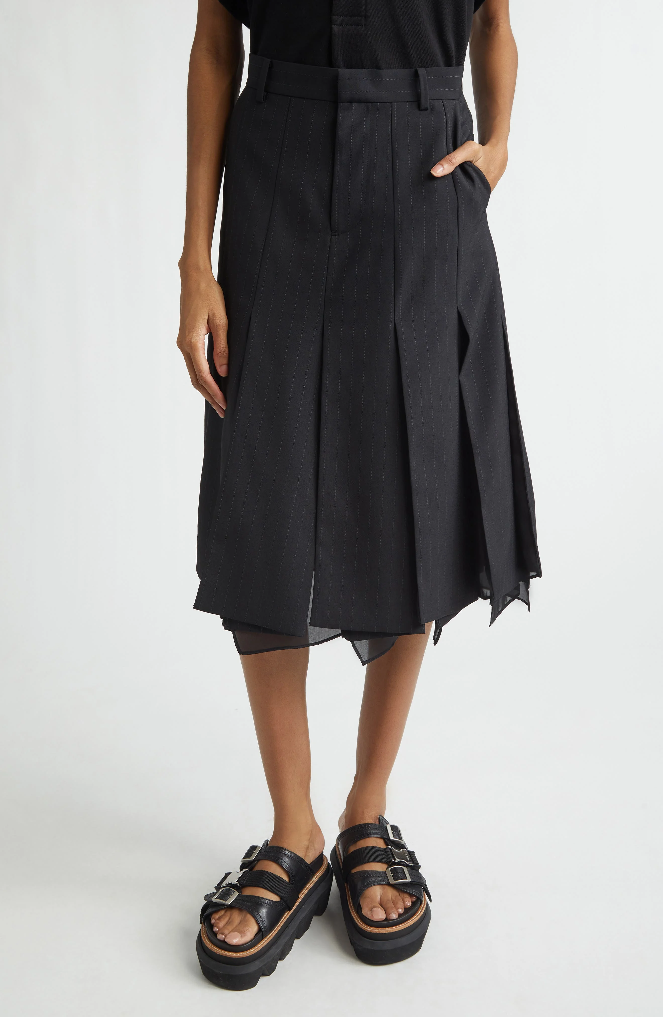 Sacai Chalk Stripe Mixed Media Skirt in Black at Nordstrom