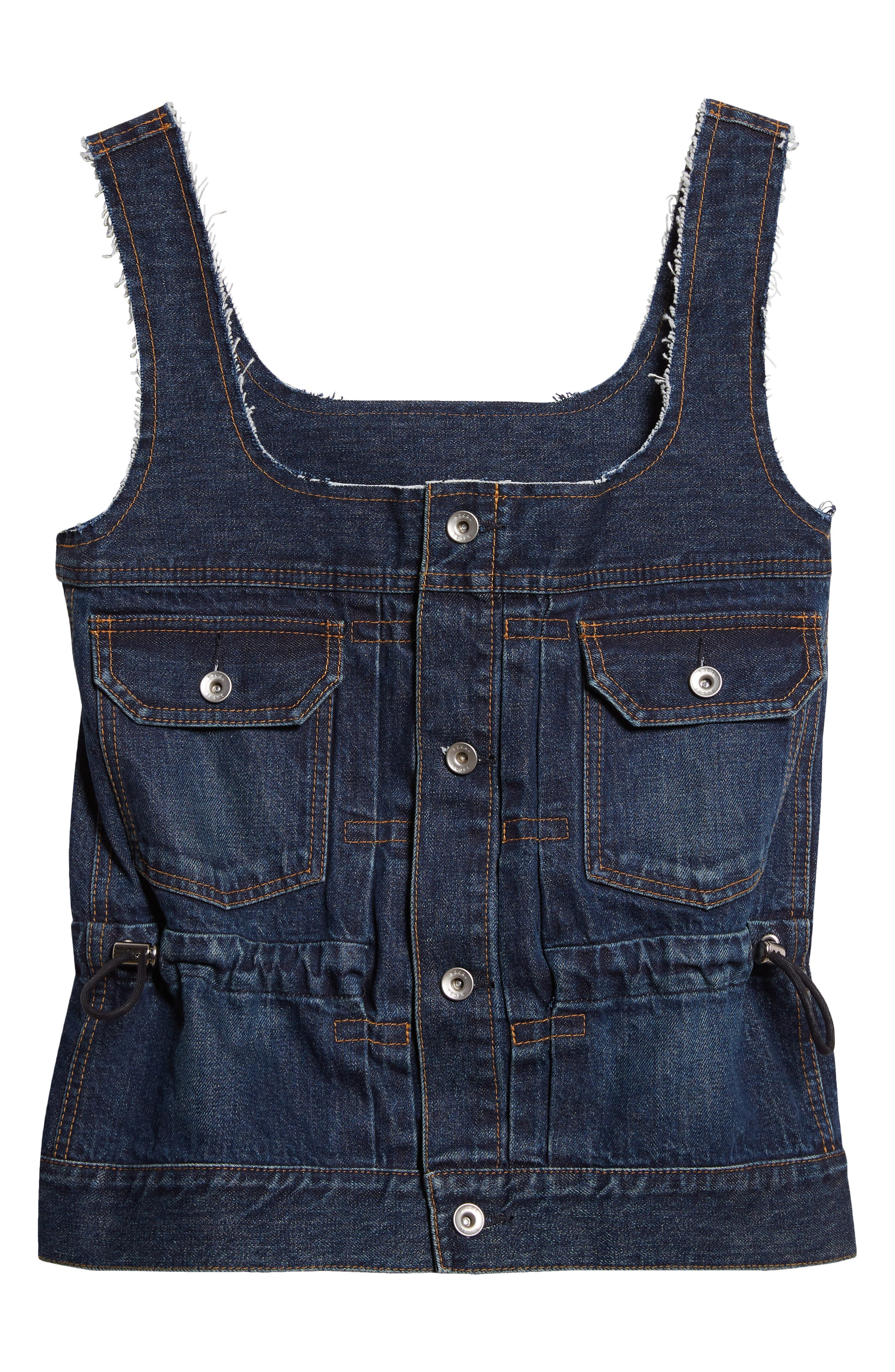 Chitose Abe's penchant for artfully mismatched aesthetics shines through the bustier-inspired silhouette of this utility-style tank featuring fraying raw edges and silhouette-cinching drawcords. Front button closure Square neck Chest button-flap patch pockets Drawcord-toggle waist 100% cotton Dry clean Made in Japan Designer Clothing Asian & Pacific Islander Owned/Founded