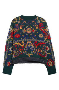 Sacai Floral Jacquard Wool Sweater in Green at Nordstrom