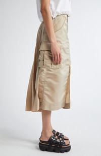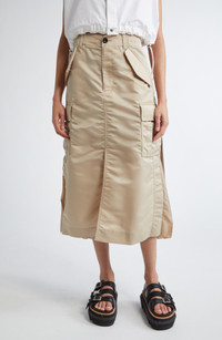 Sacai Insulated Nylon Twill Midi Cargo Skirt in Beige 651 at Nordstrom