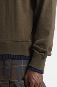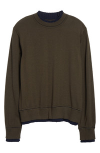 Sacai Layered Cotton & Cashmere Crewneck Sweater in Khaki/Navy at Nordstrom